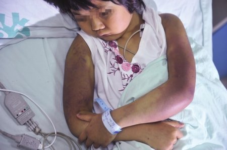 - 7岁女孩受虐致浑身血紫 医生震惊当场报警(图)