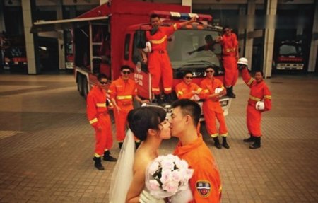 - 消防员拍婚纱照请战友全副武装当背景